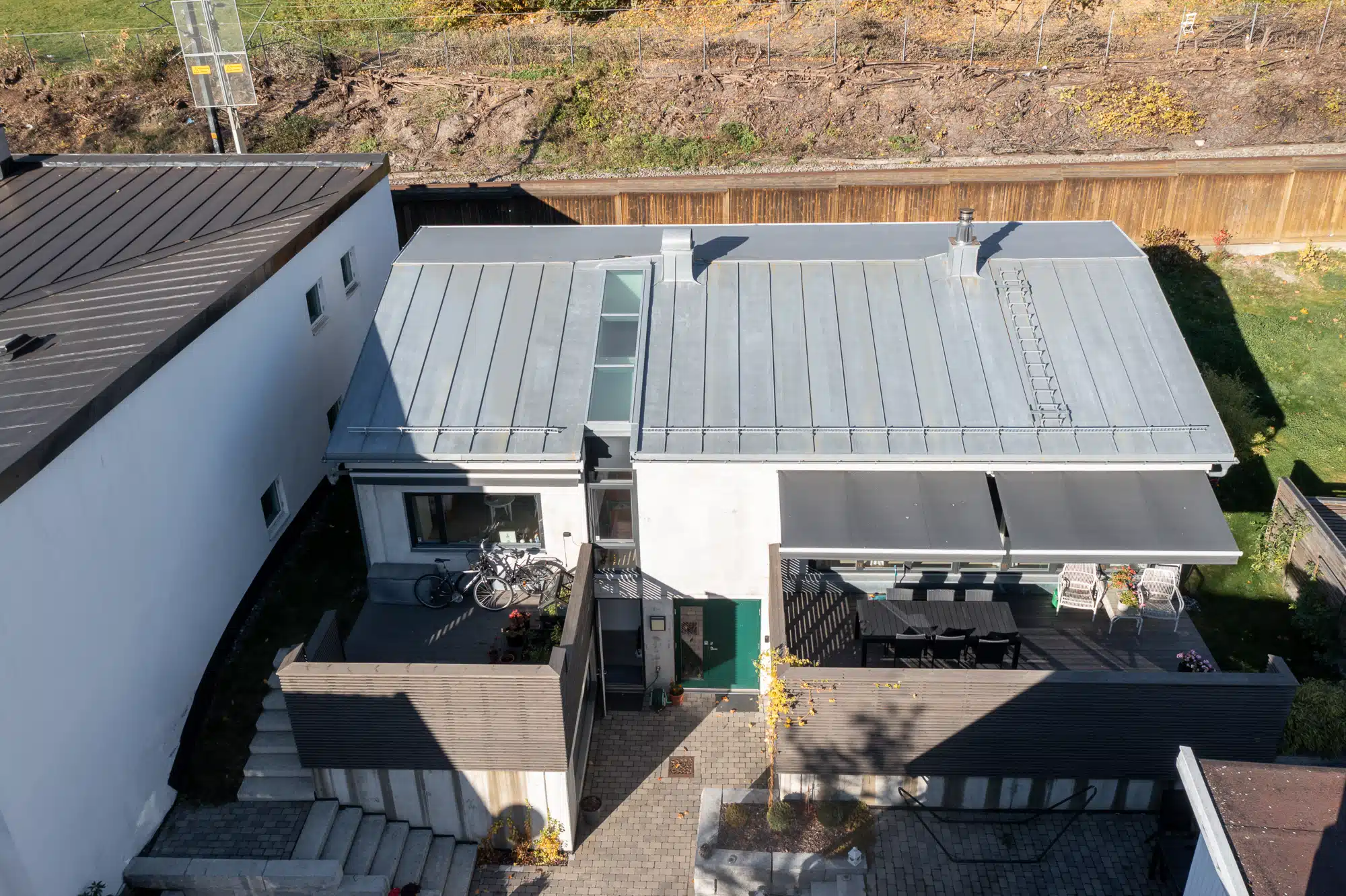 På en inneklemt eiendom blant verneverdige bygg og to jernbanespor i Vålerenga, ble det tegnet og oppført en enebolig med sekundærhybel.